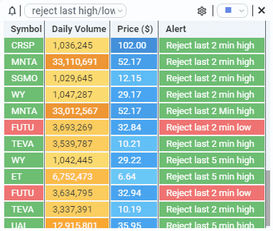| Relative Volume % | (1,2,5,15,30 min, Daily) | |