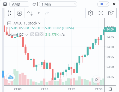 The chart tile is a perfect tool to visualize live market changes. You can view different timeframes from one minute up to one day. The chart is interactive and you can zoom in and out and scroll through the timeline. When you click on a specific alert indicator, that alert will be shown in the chart.