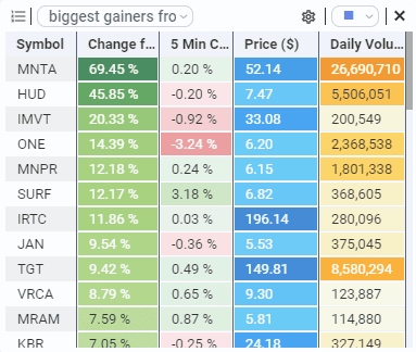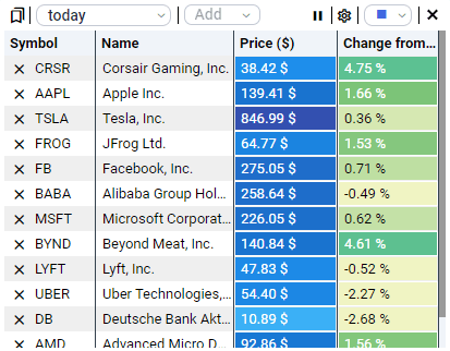 The watchlist tile enables you to manage important stocks for your trading strategy. You can configure the data columns you want to see and sort the toplist by column.